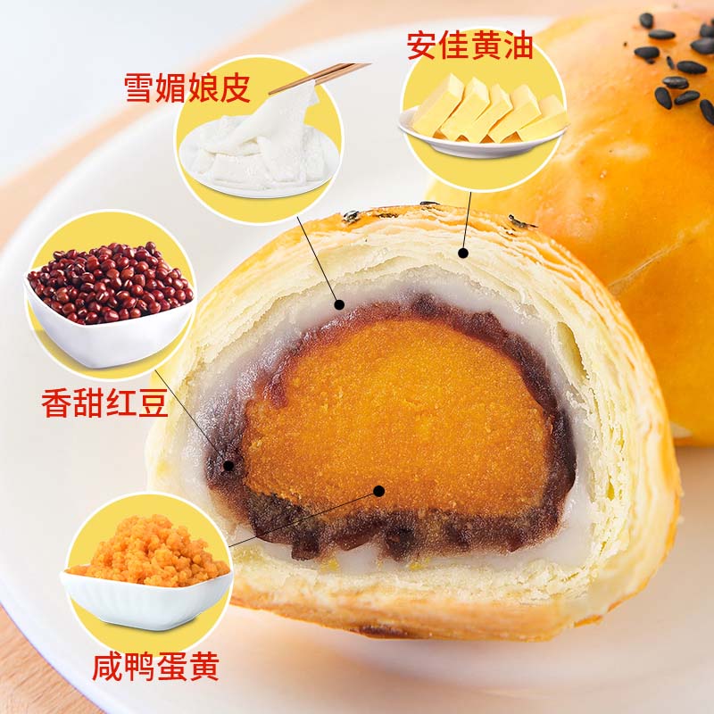 红豆味蛋黄酥+榴莲味蛋黄酥组合 |
