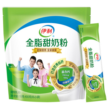 伊利全脂甜奶粉 奶粉 营养 维生素B2 早餐 冲饮 400g袋装 方便装 独立小包装 |