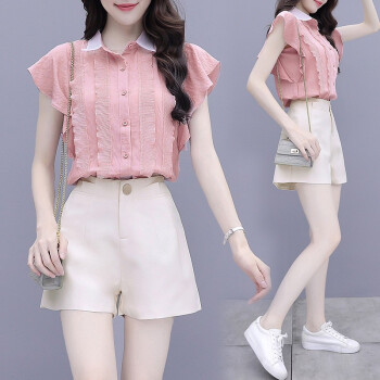 灏尼欧 雪纺衫套装女夏装新款小个子显高洋气减龄休闲短裤子两件套 粉色套装 M |