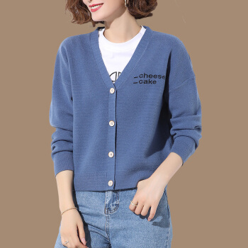 歌米拉 针织衫女开衫薄款春秋装新款秋季洋气女士毛衣外套外搭短款 蓝色 M |
