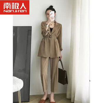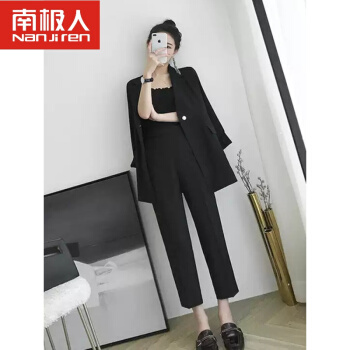 南极人轻奢高端女装 chic网红小西装外套女韩版小香风赫本风女神气质职业西服两件套装 黑色套装(配腰带) S |