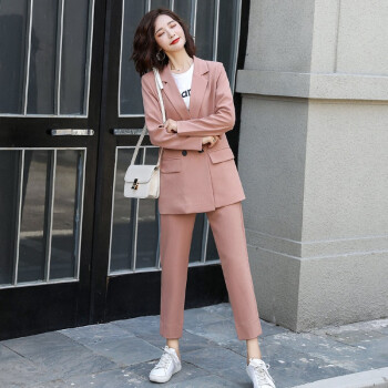 留和 小西装外套女秋季新品休闲职业装女装套装时尚款修身小个子工装外套X9911 粉色 L |
