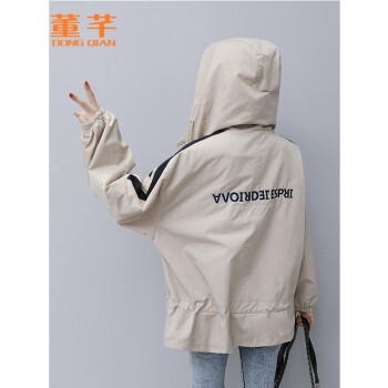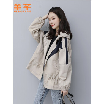 董芊 短外套女休闲风衣春季新款韩版宽松短款大衣外套春秋中长款小个子 杏色 S |