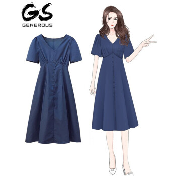 歌诺瑞丝大码女装胖mm连衣裙夏装新款文艺宽松显瘦复古休闲气质减龄韩版遮肚子洋气中长裙 蓝色 XL 推荐115-130斤 |