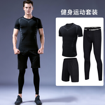 赢虎 健身服男跑步运动套装高弹速干衣篮球训练服弹力短袖短裤夏季套装 科幻三件套 XL(130-145)斤 |