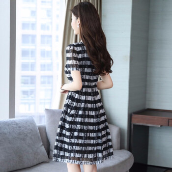 凝拉雪纺连衣裙女夏季流行新款时尚大码条纹衬衫裙短袖夏天气质裙子 格子 2XL(建议135-150斤) |