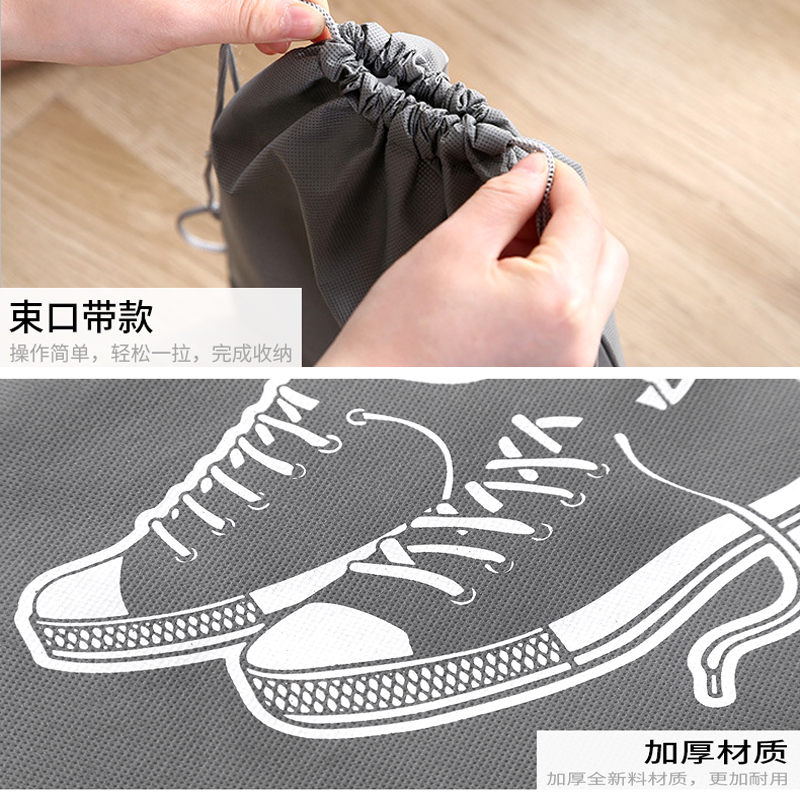 束口鞋袋收纳袋10个【无纺布/灰色】 |