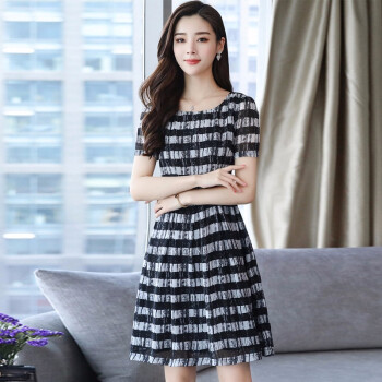 凝拉雪纺连衣裙女夏季流行新款时尚大码条纹衬衫裙短袖夏天气质裙子 格子 2XL(建议135-150斤) |