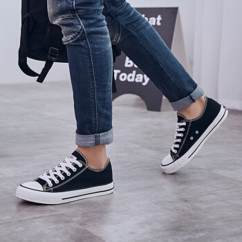 回力(warrior) 经典系带低帮男女情侣款舒适休闲帆布鞋 WXY391 黑色 42 |