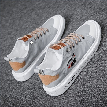 鞋子男春夏新款帆布男鞋时尚小白鞋男透气韩版休闲鞋男板鞋 灰色【刺绣款 偏小一码 建议拍大一码】 40 |