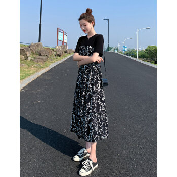 BABIBOY 连衣裙女夏季新款中长款时尚气质拼接碎花裙宽松洋气遮肚显瘦大码女装裙子女 图片色 M |