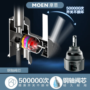 摩恩(MOEN)全铜冷热水抽拉龙头 高抛净铅健康龙头 恒芯阀芯抽拉式厨房龙头GN68002 |