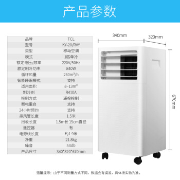 TCL移动空调单冷一体机1匹小型免安装厨房家用移动式空调 KY-20/RVY |