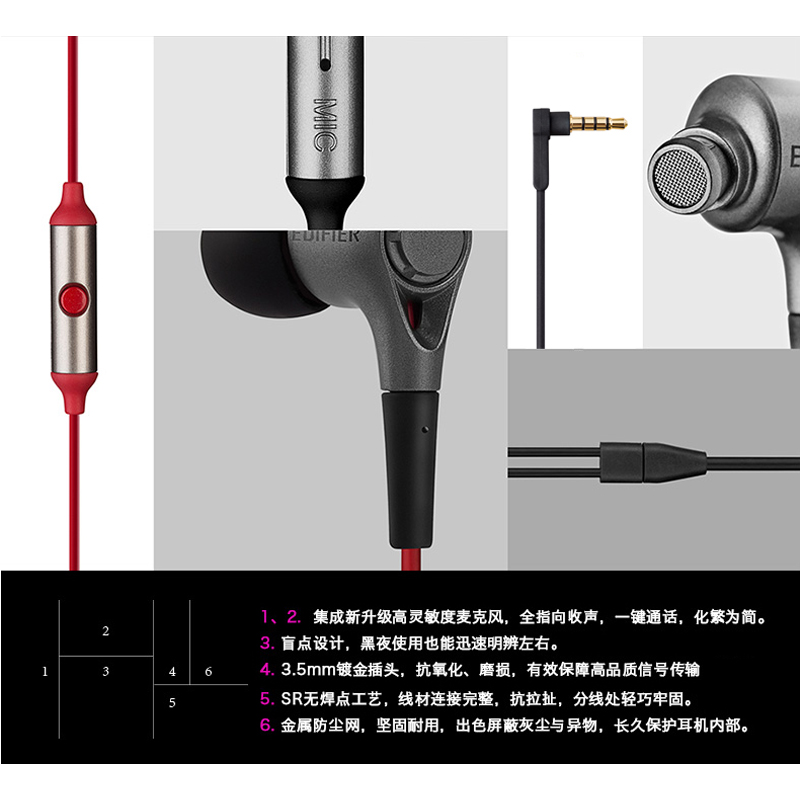 漫步者(EDIFIER)入耳式有线耳机音乐耳机【塑胶/酷黑红】 |