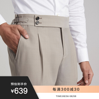 FULL MONTY米白色平纹绵羊毛西裤男高腰巴黎扣商务修身西装裤子春夏 米色1354 32 |