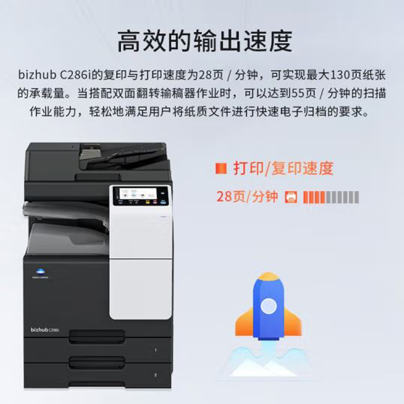 柯尼卡美能达 KONICA MINOLTA bizhub C286i打印机办公A3彩色复合机打印复印双面自动输稿器+双纸盒+工作底柜 |