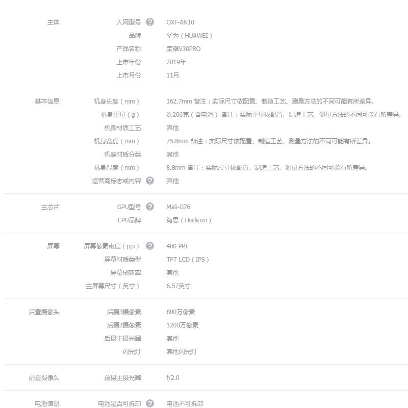 荣耀V30Pro 全网通5G手机【无/魅海星蓝】 |
