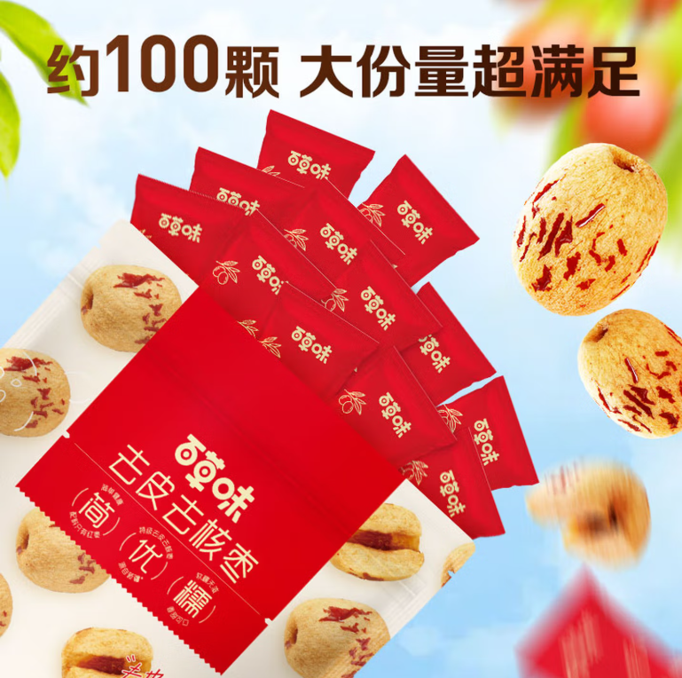 百草味 新疆免洗红枣去皮去核枣350g |