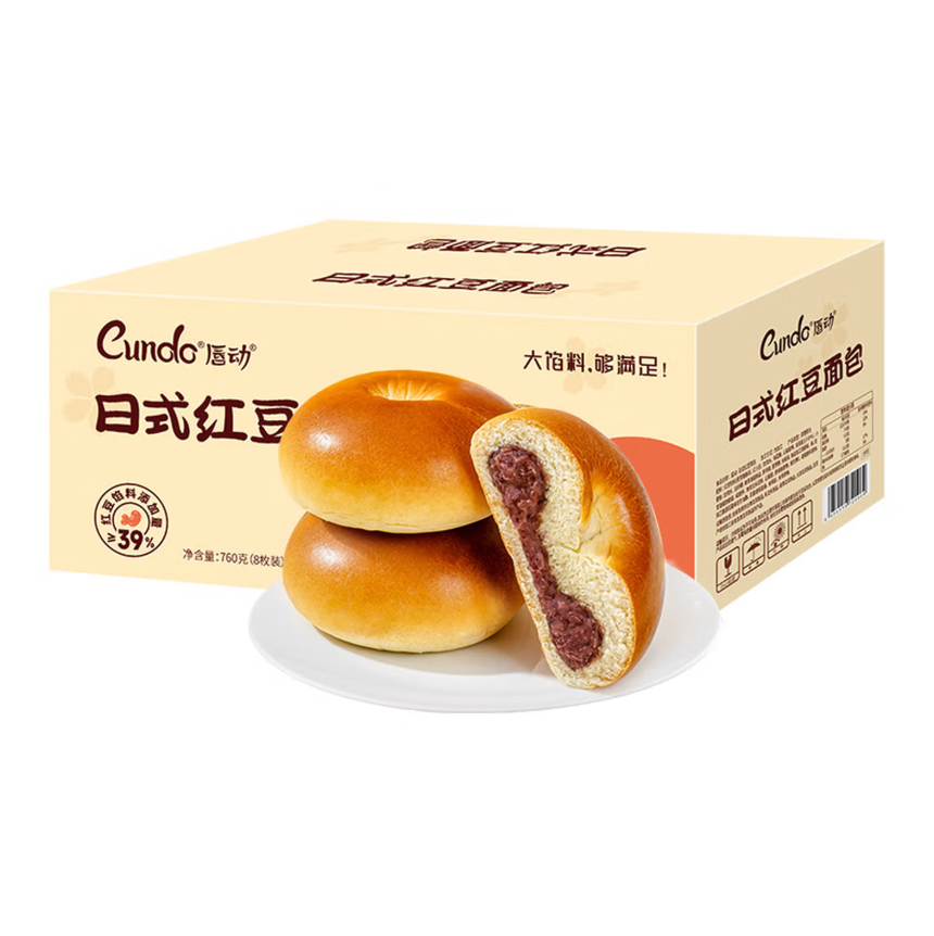 唇动红豆面包早餐零食760g |