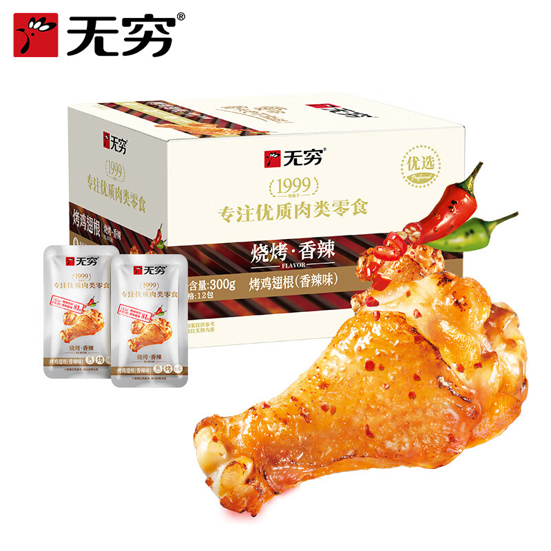 无穷鸡小腿烤鸡翅根香辣味300g |