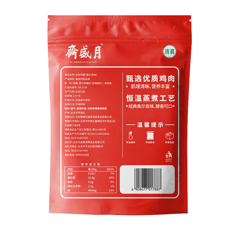 月盛斋去皮鸡腿奥尔良味 75g*8袋 |