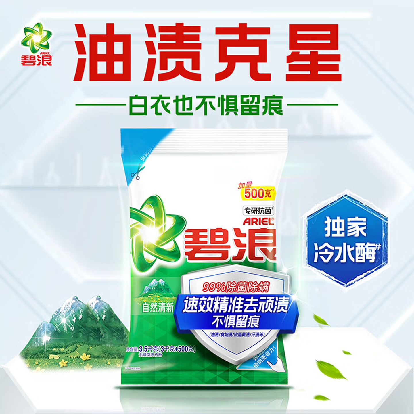 碧浪洗衣粉专业去渍无磷自然清新清雅茉莉柔香型大袋包装机手洗家庭装 自然清新型3.5kg |