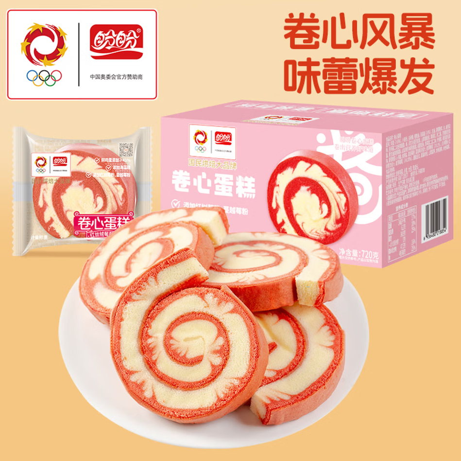 盼盼红丝绒莓莓味卷心蛋糕720g |