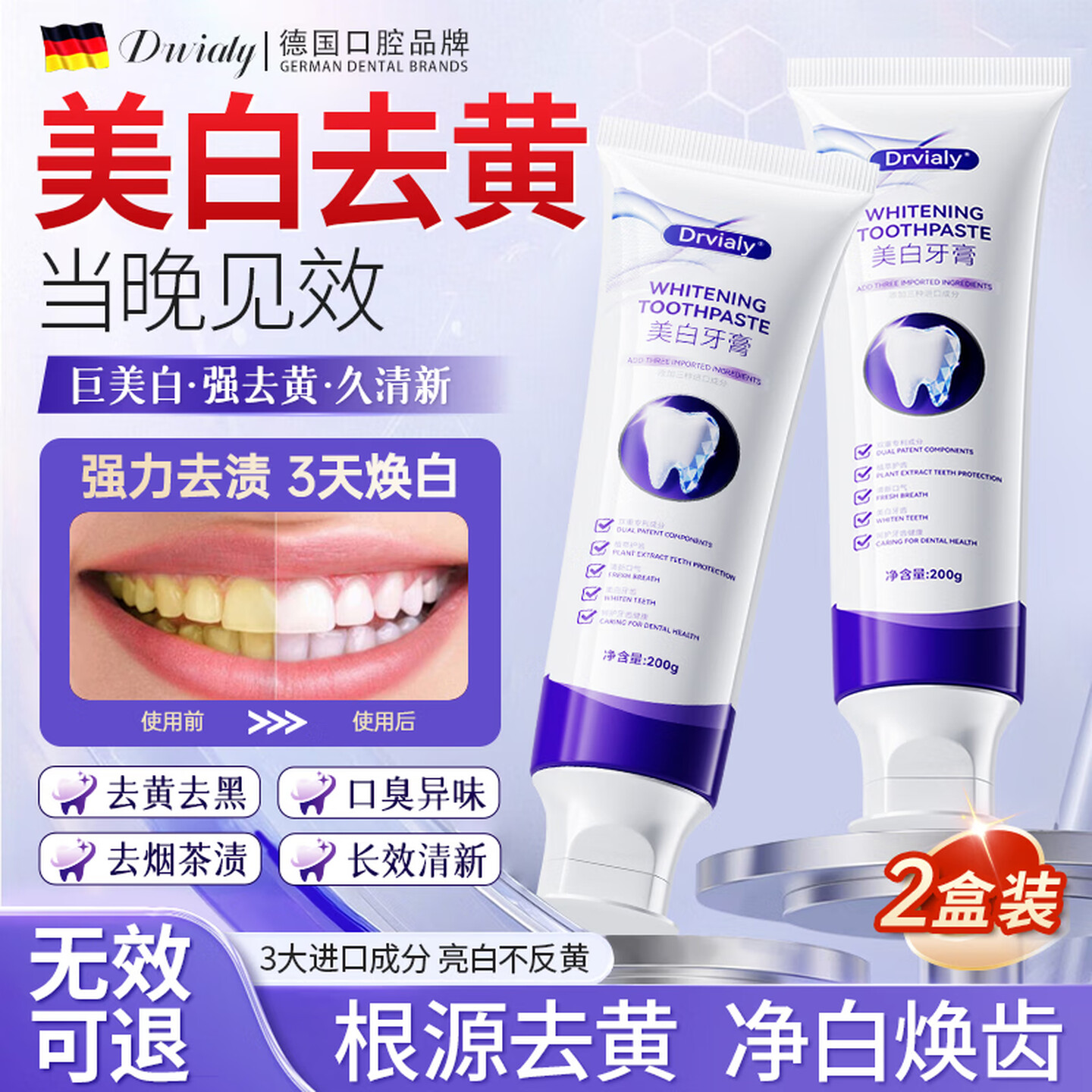 DRVIALY参半美白牙膏去烟茶渍200g |