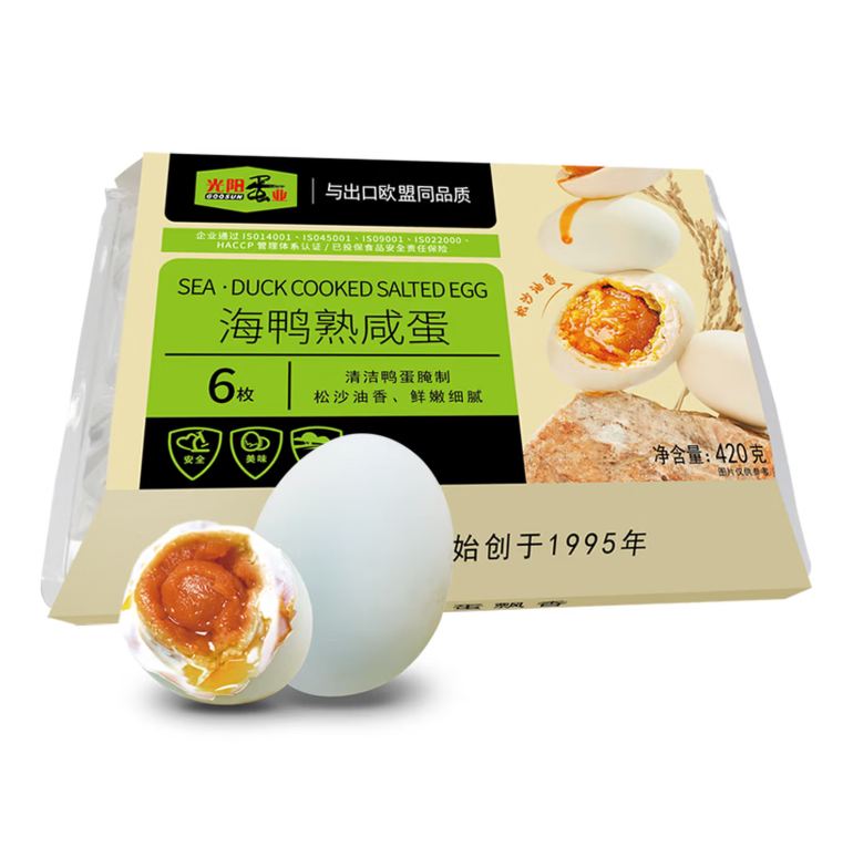 光阳咸鸭蛋420g6枚装 海鸭蛋松沙流油 |