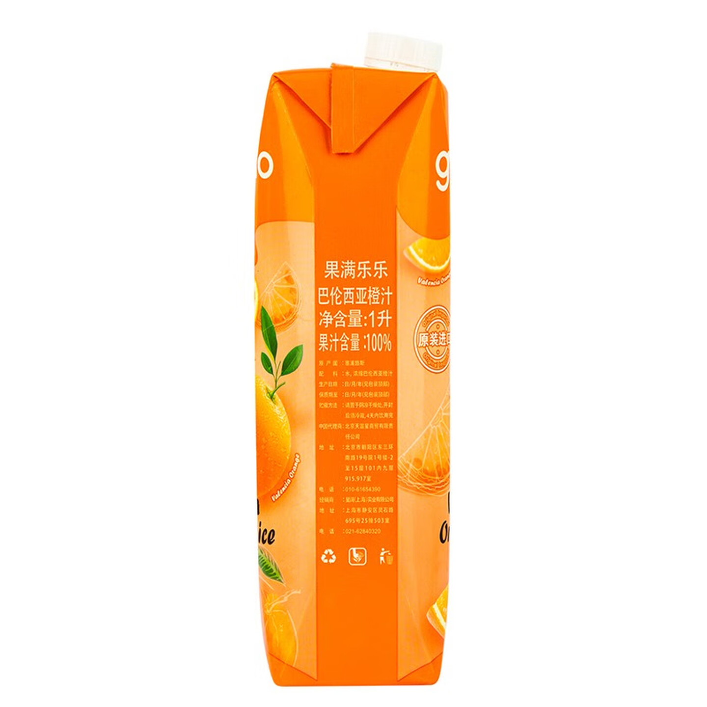 果满乐乐塞浦路斯进口巴伦西亚橙汁大瓶装100%纯果汁1L |