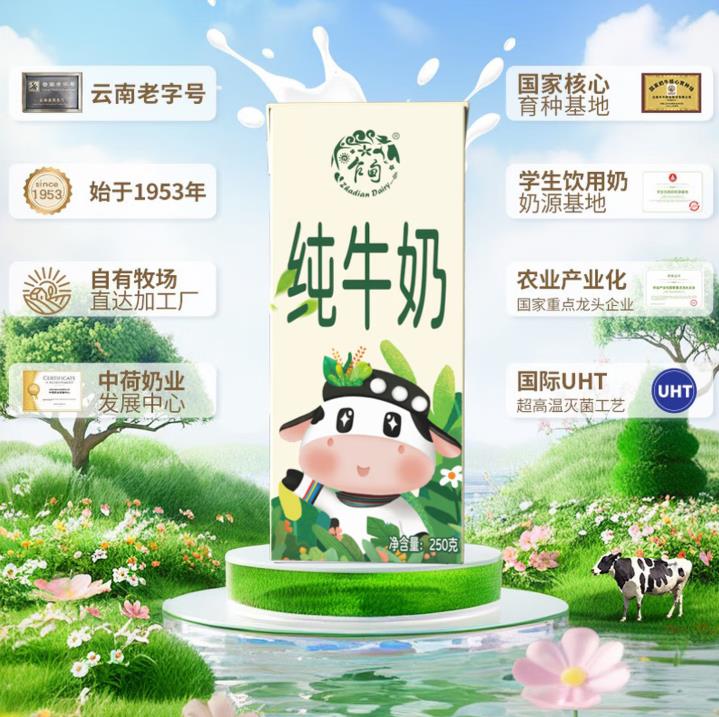 乍甸云南高原牧场纯牛奶250g*12盒 |