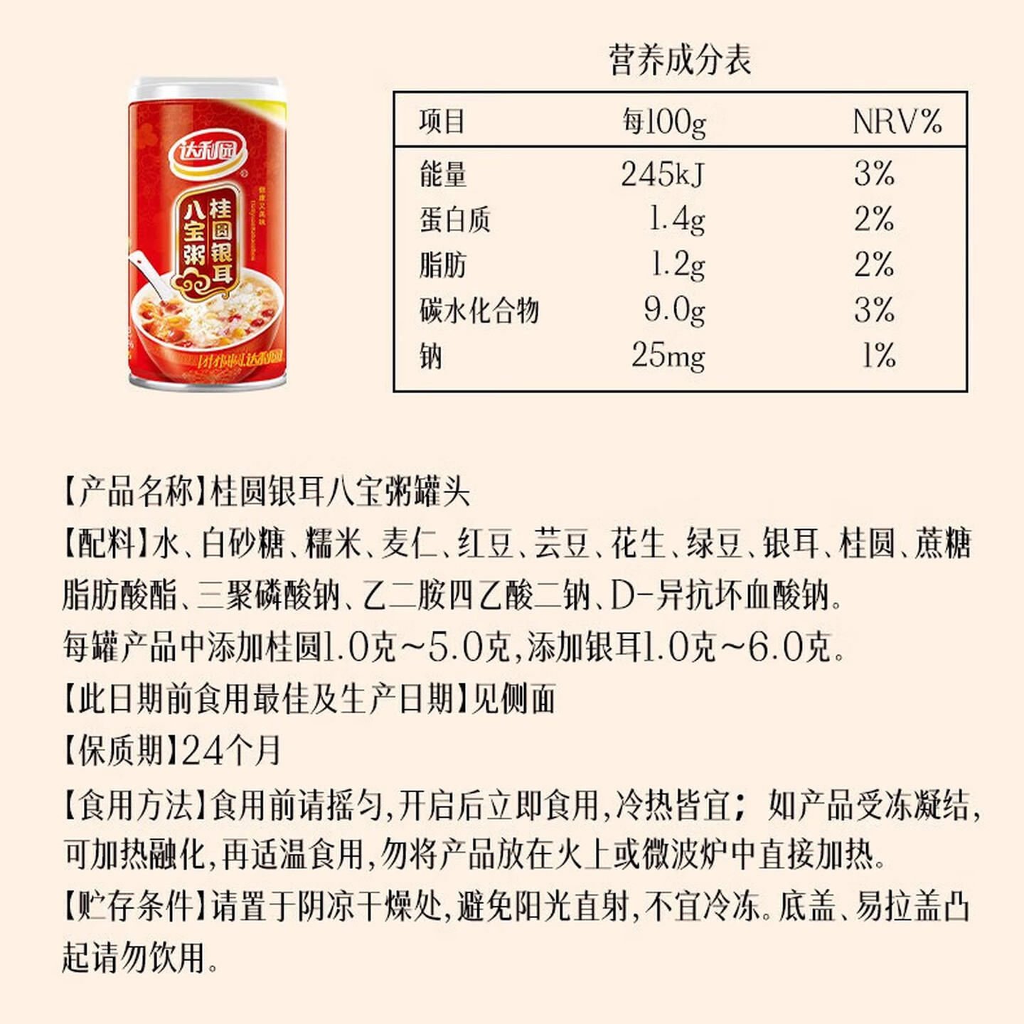 达利园桂圆银耳八宝粥年货送礼速食早餐粥即食罐头360g*12罐 即食粥 |