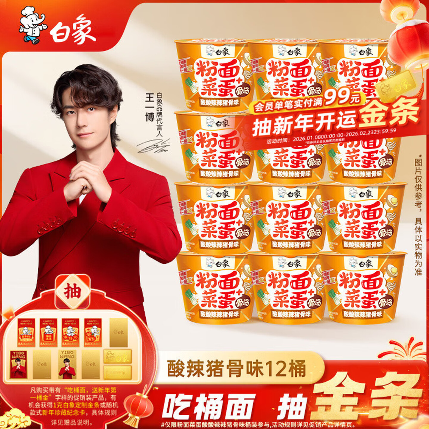 白象粉面菜蛋酸辣猪骨味泡面粉丝卤蛋156g*12桶 即食面 |