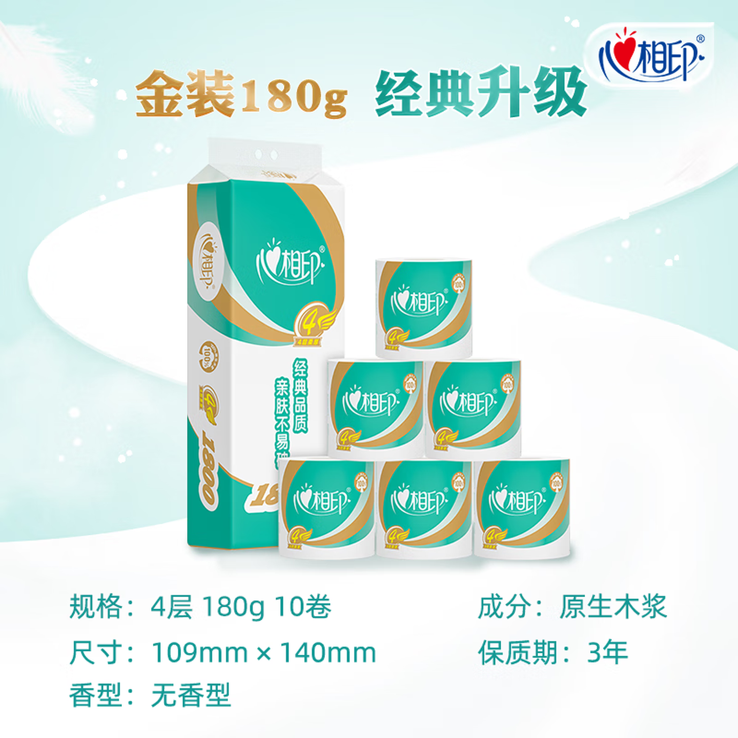 心相印有芯卷纸 卷筒纸心柔4层180g*10卷 |