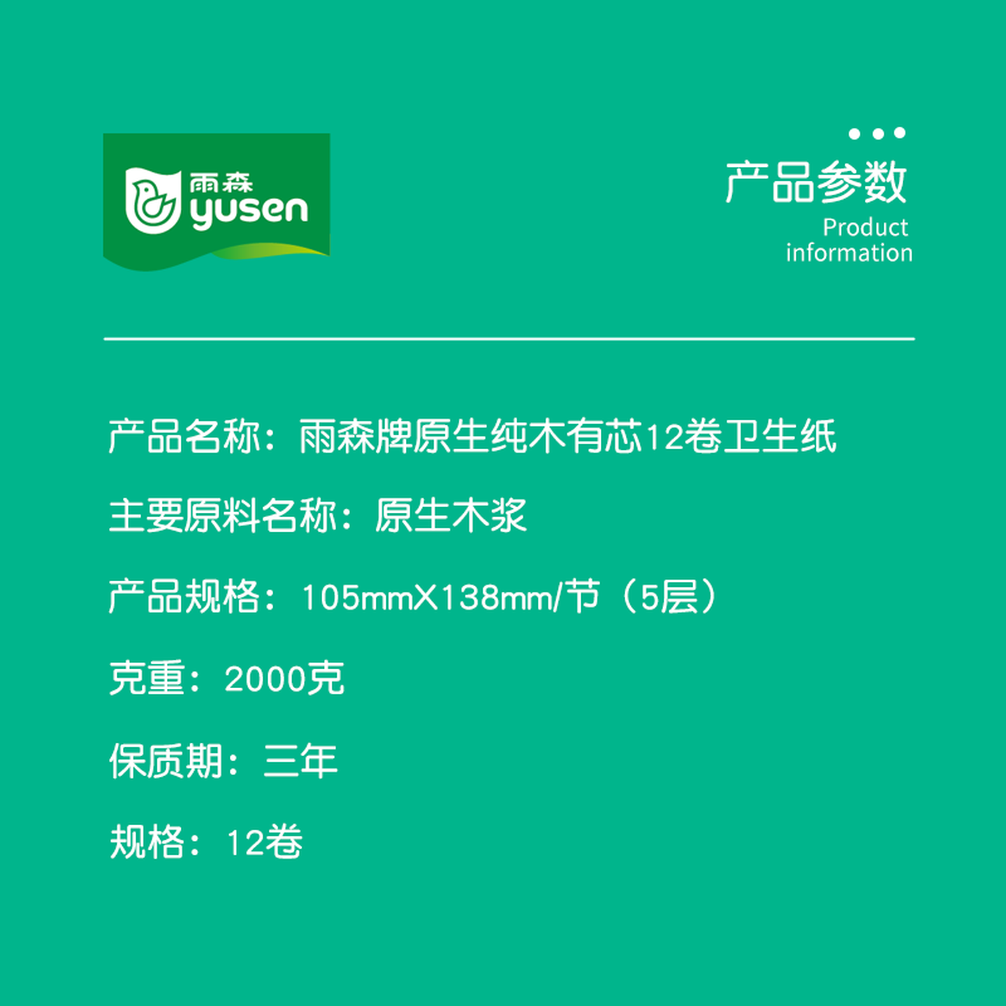 雨森(YUSEN)原生纯木系列卷纸5层加厚166g/卷*12卷 |