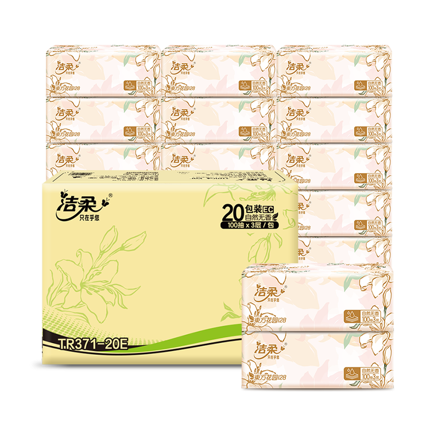 洁柔抽纸 繁花系列3层100抽*20包 |