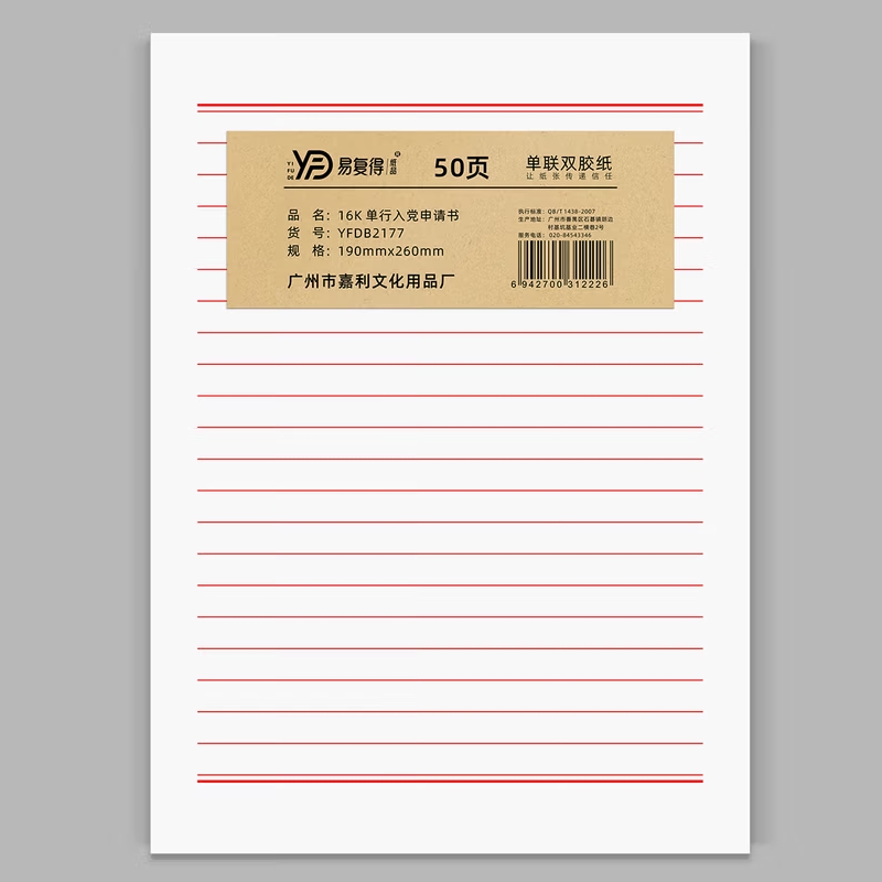 易复得16K专用信纸单行(100张) 2本 |